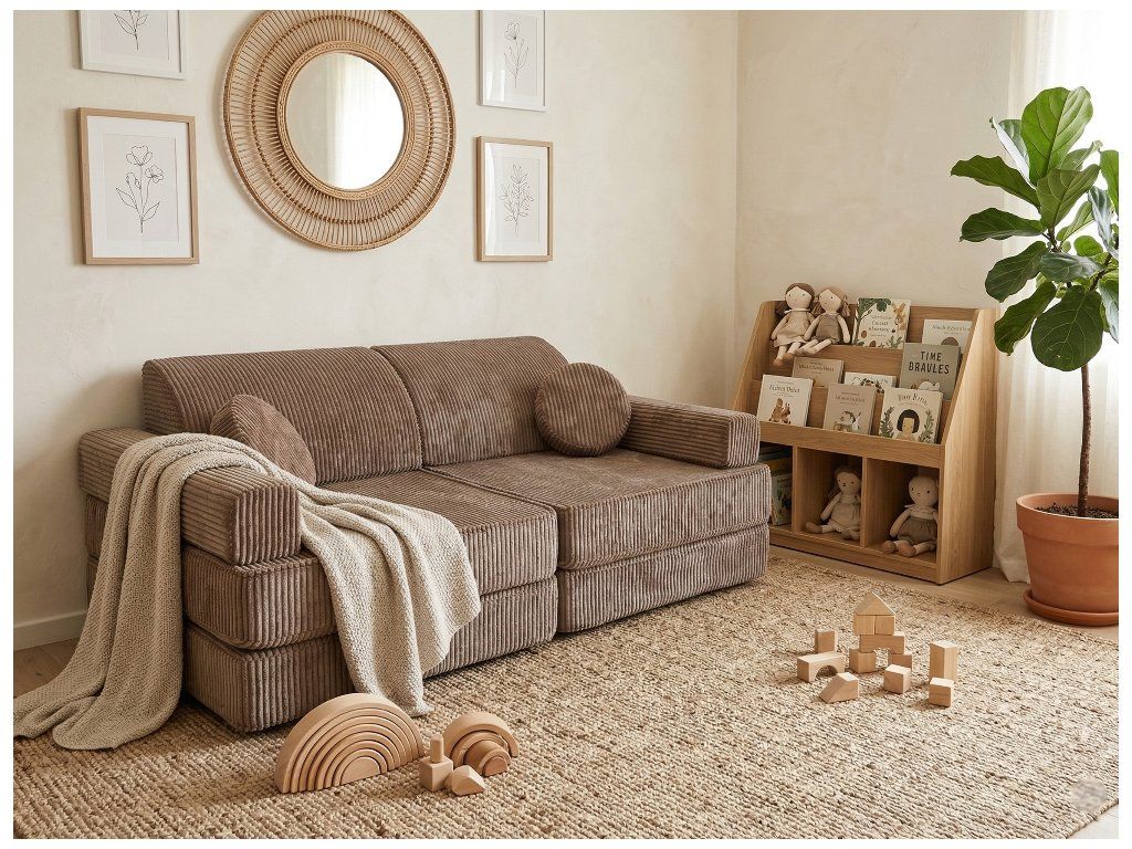 Modulárna sedačka Nico od Eyleen je všestranná hracia sedačka navrhnutá pre nekonečné množstvo nápaditých hier a útulný relax. Jej modulárny dizajn starostlivo vyrobený pre deti, umožňuje malým staviteľom vytvárať sedačku, posteľ, bunkre, autá alebo tajné úkryty. Či už na čítanie, odpočinok alebo hranie, táto mäkká a priestranná sedačka prináša pohodlie a kreativitu do každej detskej izby alebo herne.