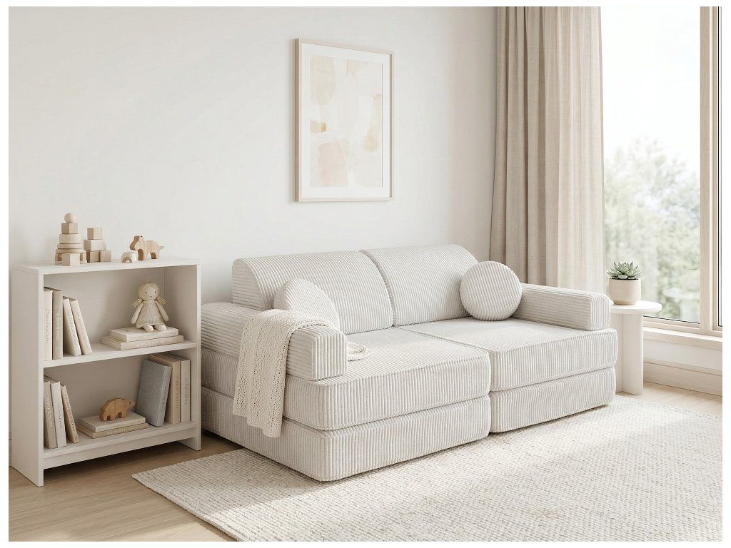 Modulárna sedačka Nico od Eyleen je všestranná hracia sedačka navrhnutá pre nekonečné množstvo nápaditých hier a útulný relax. Jej modulárny dizajn starostlivo vyrobený pre deti, umožňuje malým staviteľom vytvárať sedačku, posteľ, bunkre, autá alebo tajné úkryty. Či už na čítanie, odpočinok alebo hranie, táto mäkká a priestranná sedačka prináša pohodlie a kreativitu do každej detskej izby alebo herne.