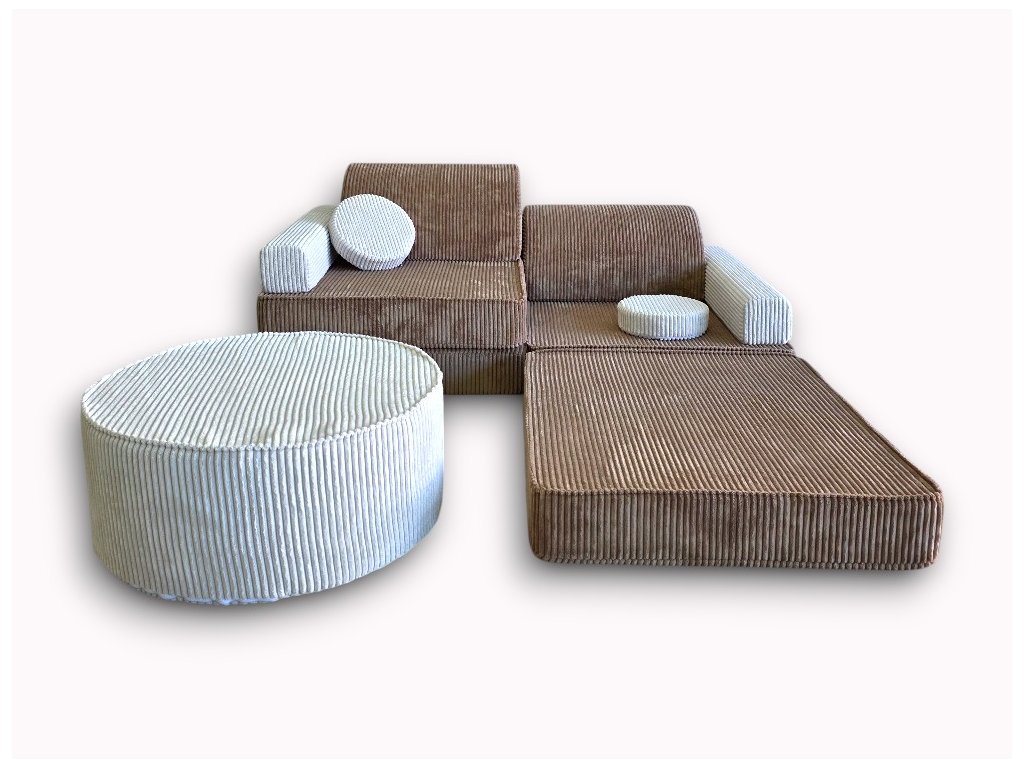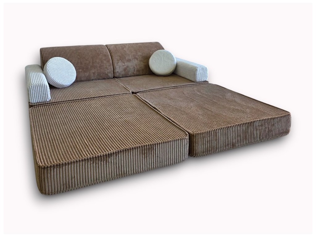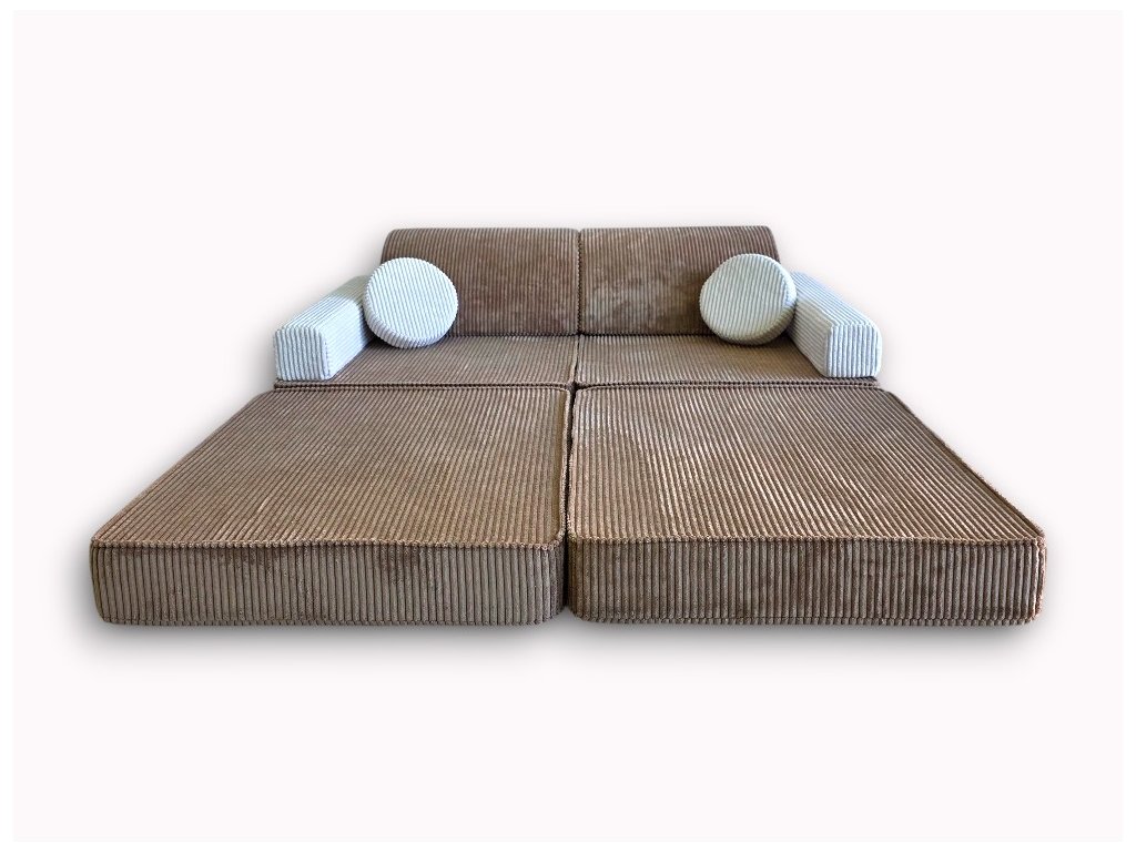 Modulárna sedačka Nico od Eyleen je všestranná hracia sedačka navrhnutá pre nekonečné množstvo nápaditých hier a útulný relax. Jej modulárny dizajn starostlivo vyrobený pre deti, umožňuje malým staviteľom vytvárať sedačku, posteľ, bunkre, autá alebo tajné úkryty. Či už na čítanie, odpočinok alebo hranie, táto mäkká a priestranná sedačka prináša pohodlie a kreativitu do každej detskej izby alebo herne.