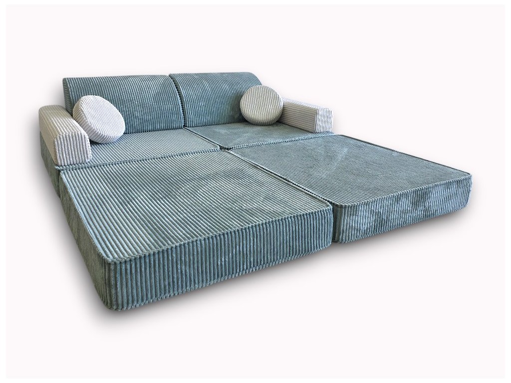 Modulárna sedačka Nico od Eyleen je všestranná hracia sedačka navrhnutá pre nekonečné množstvo nápaditých hier a útulný relax. Jej modulárny dizajn starostlivo vyrobený pre deti, umožňuje malým staviteľom vytvárať sedačku, posteľ, bunkre, autá alebo tajné úkryty. Či už na čítanie, odpočinok alebo hranie, táto mäkká a priestranná sedačka prináša pohodlie a kreativitu do každej detskej izby alebo herne.