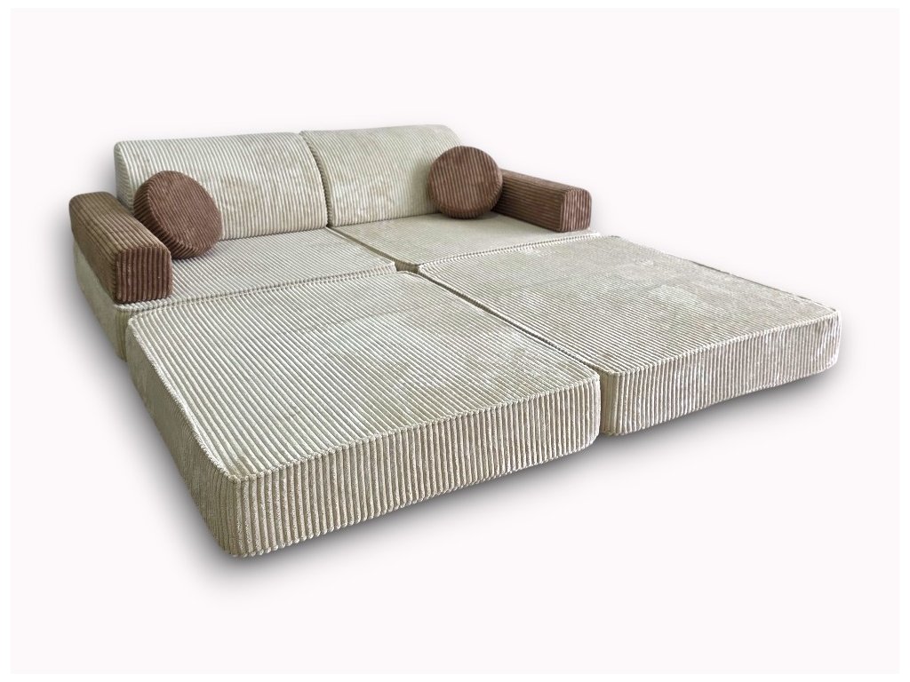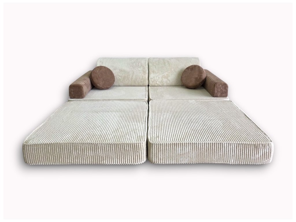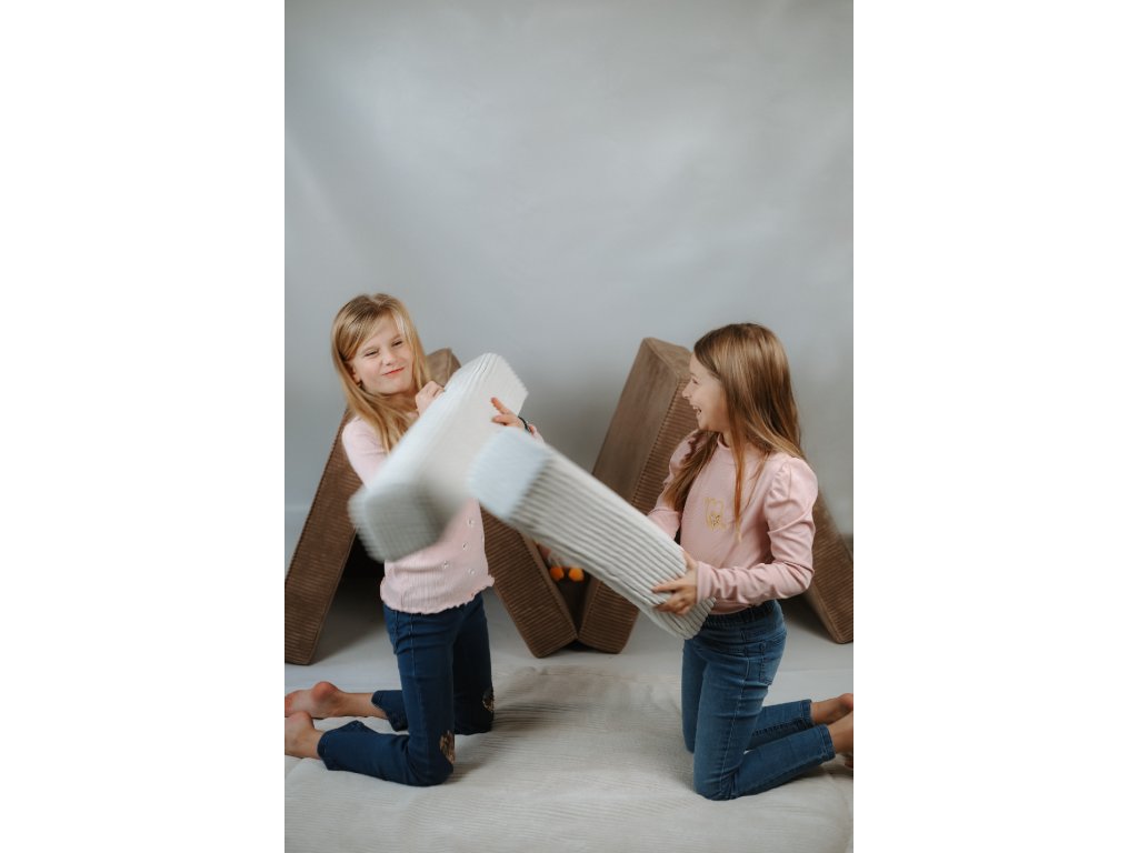 Modulárna sedačka Nico od Eyleen je všestranná hracia sedačka navrhnutá pre nekonečné množstvo nápaditých hier a útulný relax. Jej modulárny dizajn starostlivo vyrobený pre deti, umožňuje malým staviteľom vytvárať sedačku, posteľ, bunkre, autá alebo tajné úkryty. Či už na čítanie, odpočinok alebo hranie, táto mäkká a priestranná sedačka prináša pohodlie a kreativitu do každej detskej izby alebo herne.