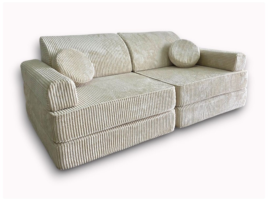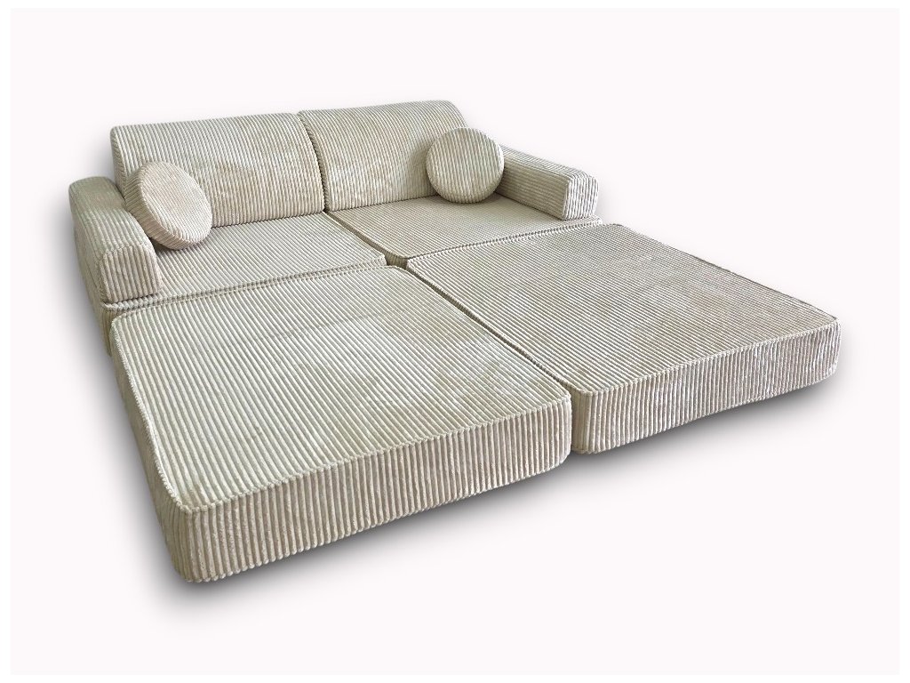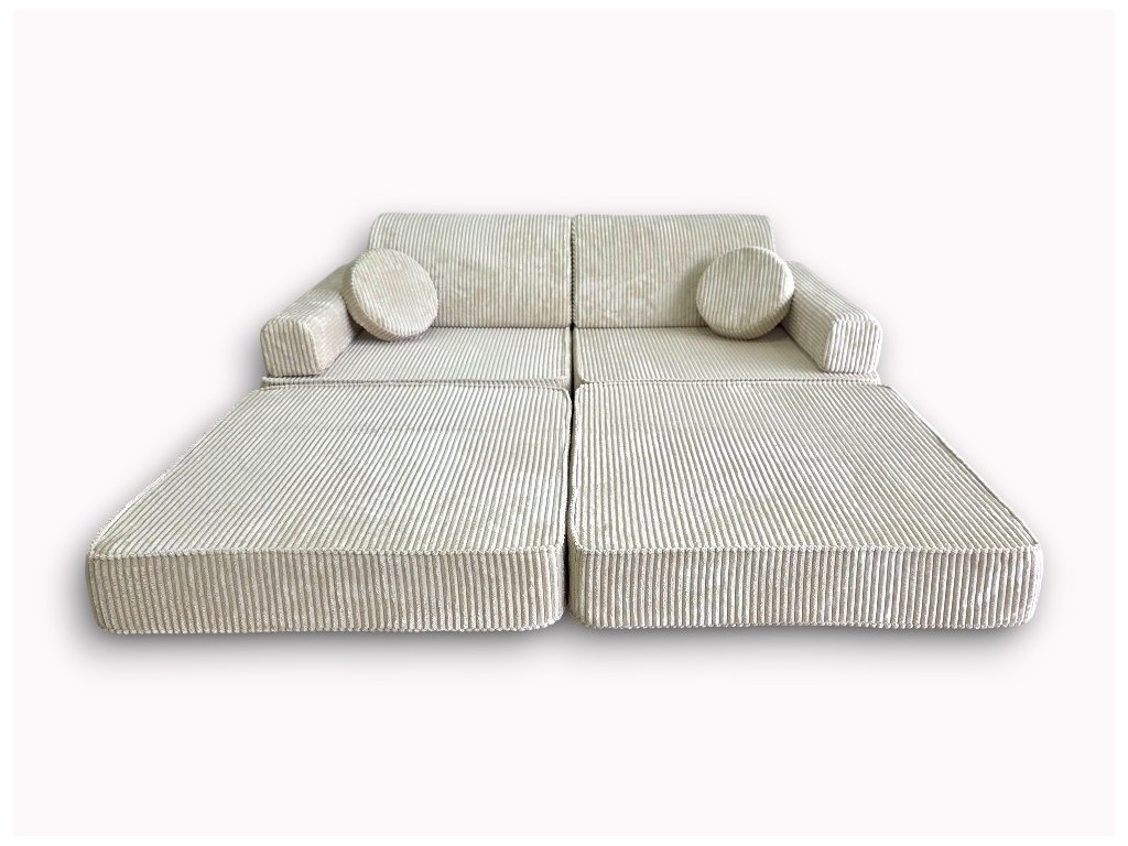 Modulárna sedačka Nico od Eyleen je všestranná hracia sedačka navrhnutá pre nekonečné množstvo nápaditých hier a útulný relax. Jej modulárny dizajn starostlivo vyrobený pre deti, umožňuje malým staviteľom vytvárať sedačku, posteľ, bunkre, autá alebo tajné úkryty. Či už na čítanie, odpočinok alebo hranie, táto mäkká a priestranná sedačka prináša pohodlie a kreativitu do každej detskej izby alebo herne.