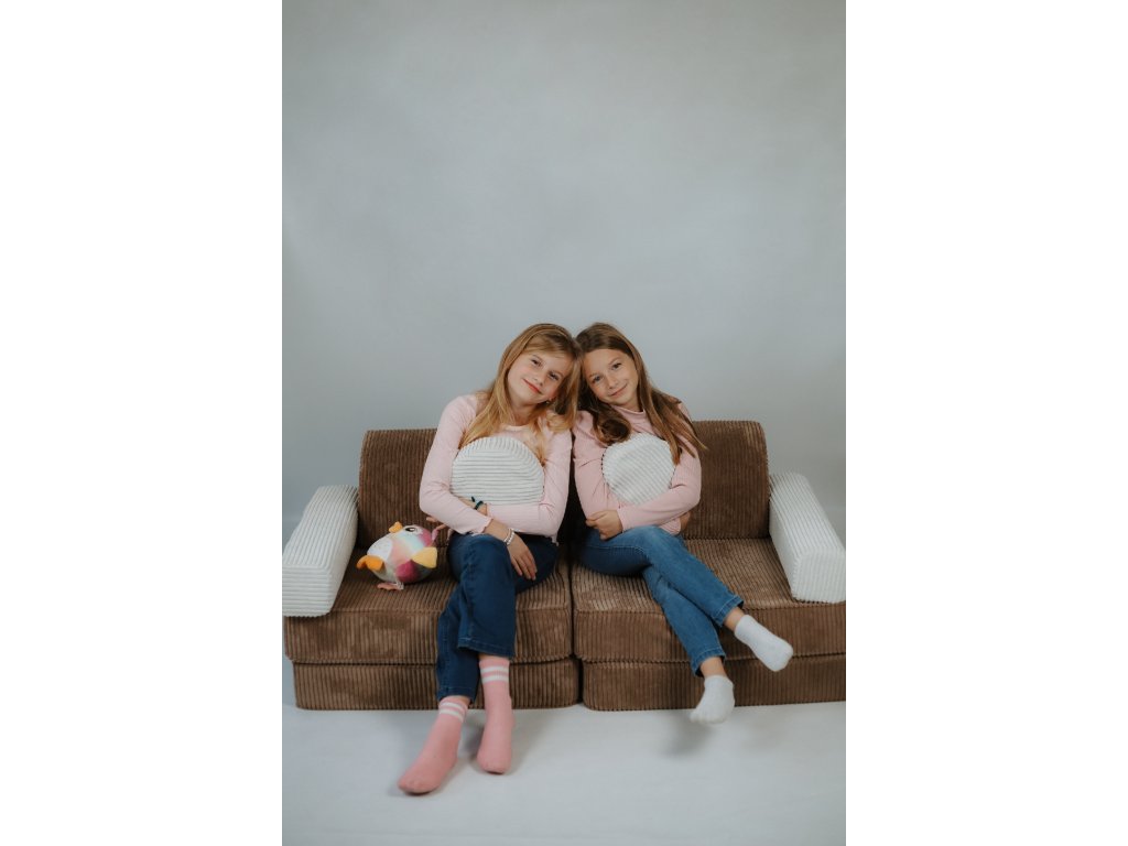 Modulárna sedačka Nico od Eyleen je všestranná hracia sedačka navrhnutá pre nekonečné množstvo nápaditých hier a útulný relax. Jej modulárny dizajn starostlivo vyrobený pre deti, umožňuje malým staviteľom vytvárať sedačku, posteľ, bunkre, autá alebo tajné úkryty. Či už na čítanie, odpočinok alebo hranie, táto mäkká a priestranná sedačka prináša pohodlie a kreativitu do každej detskej izby alebo herne.