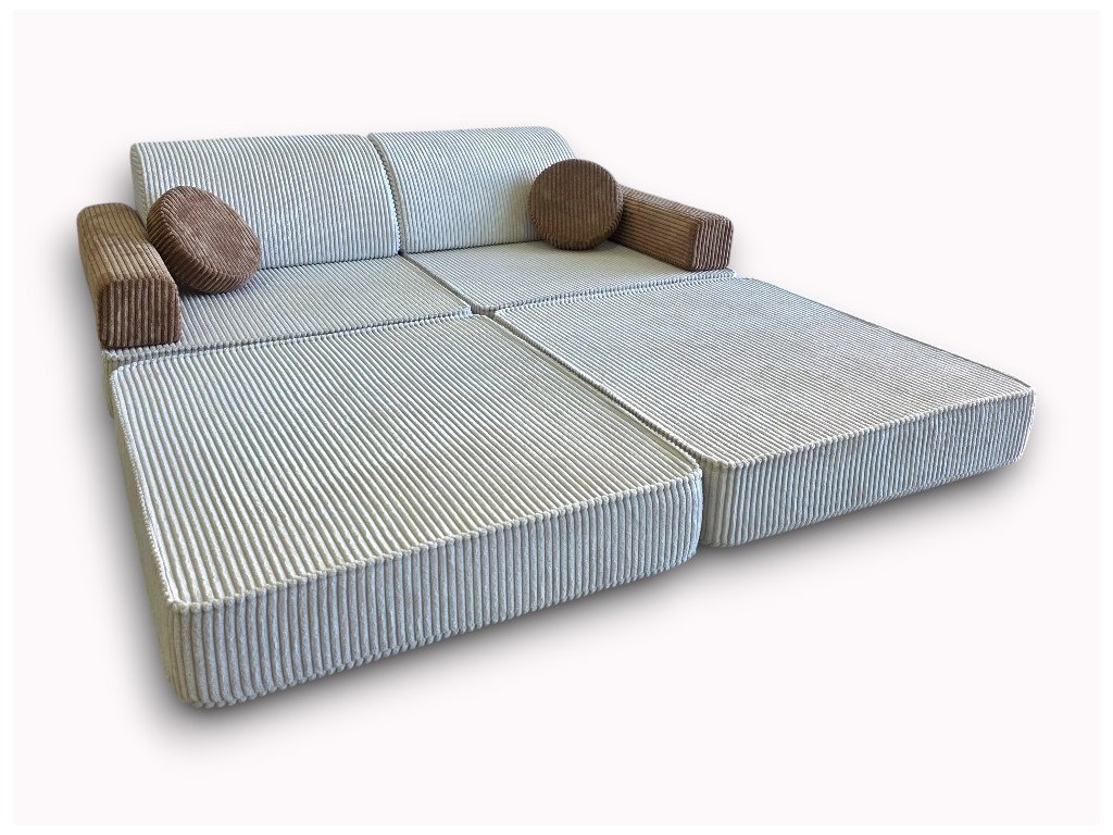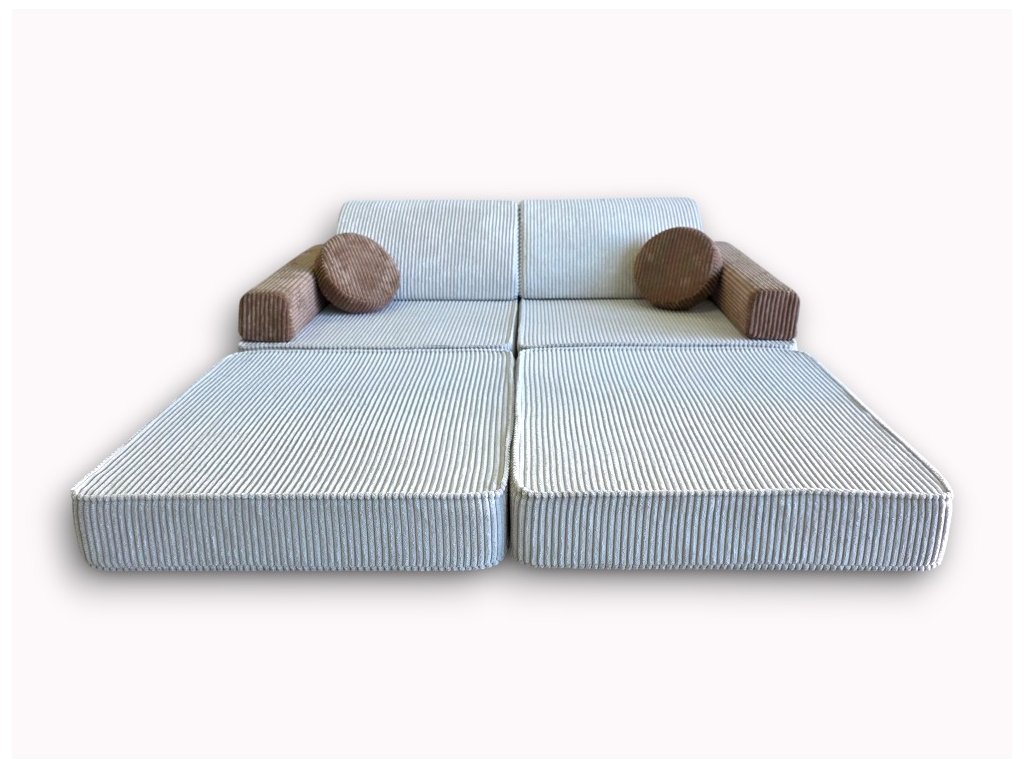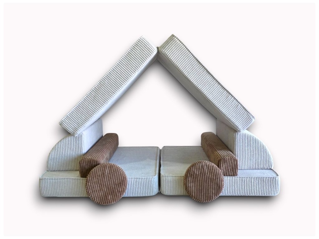 Modulárna sedačka Nico od Eyleen je všestranná hracia sedačka navrhnutá pre nekonečné množstvo nápaditých hier a útulný relax. Jej modulárny dizajn starostlivo vyrobený pre deti, umožňuje malým staviteľom vytvárať sedačku, posteľ, bunkre, autá alebo tajné úkryty. Či už na čítanie, odpočinok alebo hranie, táto mäkká a priestranná sedačka prináša pohodlie a kreativitu do každej detskej izby alebo herne.
