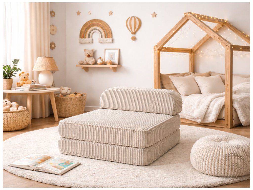 Dizajnové modulárne kresielko Lily od Eyleen prináša maximálne pohodlie a všestrannosť do vášho interiéru. Vďaka premyslenej skladacej konštrukcii môžete kresielko jednoducho premeniť na pohodlné ležadlo alebo nízku posteľ – ideálne na relax, čítanie či oddych počas dňa. Vyrobené je z kvalitného, mäkkého a odolného poťahu s jemnou rebrovanou textúrou, ktorá pôsobí moderne a zároveň príjemne na dotyk. Kresielko má elegantný vzhľad, ktorý zapadne do každého interiéru. Vďaka menším rozmerom nezaberie veľa miesta v detskej izbe, herni alebo obývačke.
