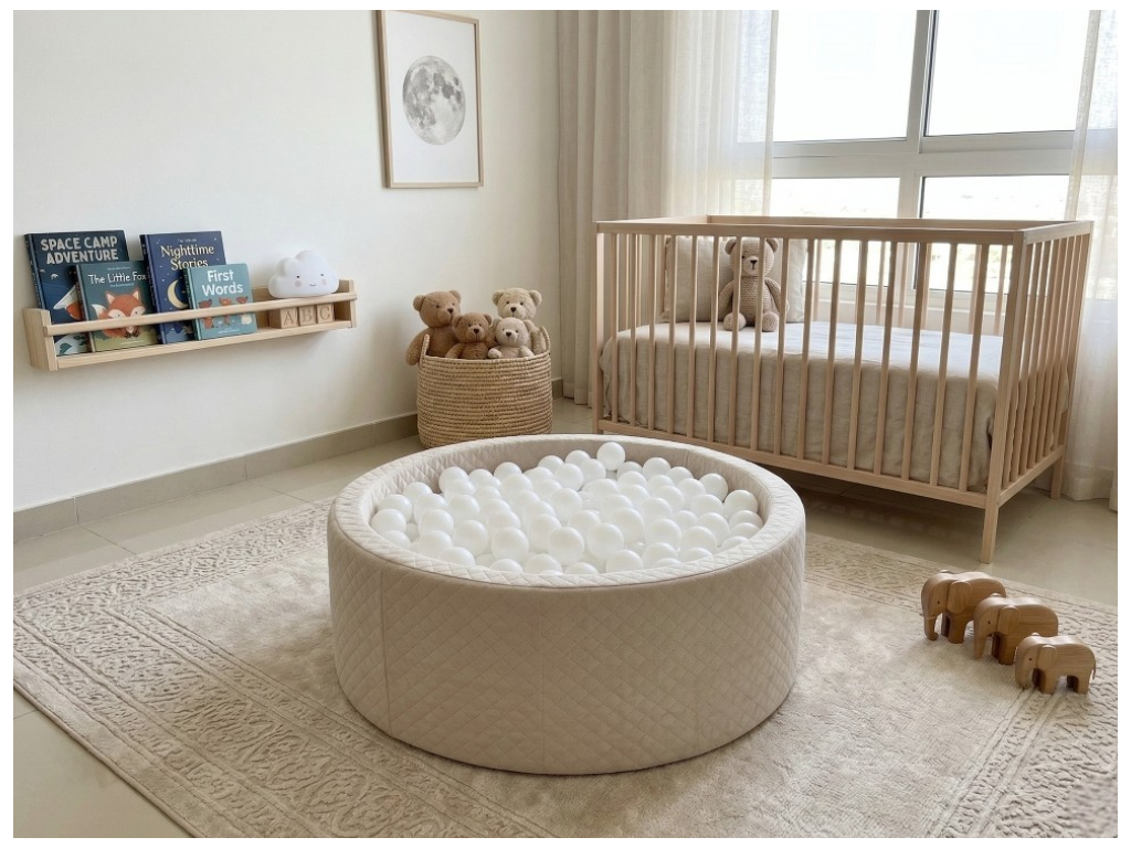 Suchý bazén Dino od Eyleen je ideálne miesto na nekonečnú zábavu, tvorivé hry a bezpečný pohyb. Vďaka mäkkým penovým stenám a dnu je vhodný aj pre najmenšie deti, pričom elegantný prešívaný poťah krásne doplní každý interiér. Stačí ho naplniť loptičkami (100 ks), ktoré máte od nás zadarmo a sledovať, ako sa deti ponoria do radosti z hry.